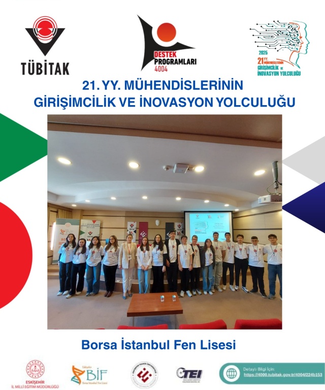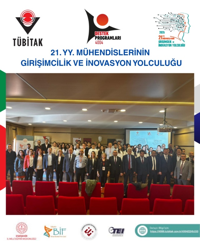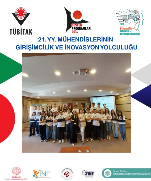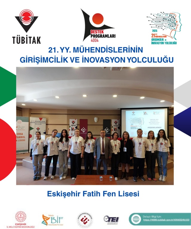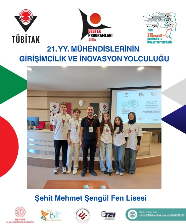 Tepebaşı İlçe Milli Eğitim Müdürlüğü adına Şube Müdürümüz Ahmet Şen, Eskişehir Teknik Üniversitesi adına Rektör Yardımcısı Prof. Dr. Hanife Apaydın Özkan, Proje Yürütücüsü Dr. Serap Öz, Proje Uzmanları Prof. Dr. Ferhan Şengür, Prof. Dr. Servet Turan ve Veli Deniz’in katılımlarıyla gerçekleştirilen programda, gençlerimizin yenilikçi fikirlerle geleceğe yön verme heyecanına ortak olduk.