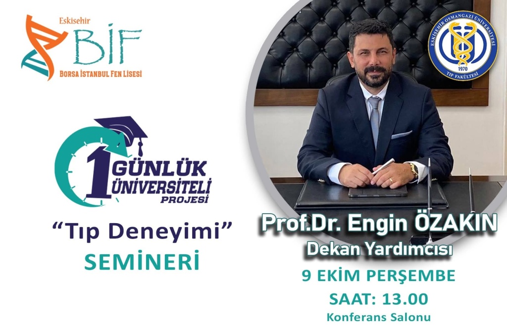 Proje tanıtımı için ESOGÜ Tıp Fakültesi Dekan Yardımcısı Prof. Dr. Engin Özakın, öğrencilerimizle bir araya gelecek.